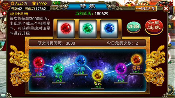 如果招募新将领比较频繁,平常许愿树可以全种经验卡,铜币产出可以依靠产量高投入低的摇钱系统。