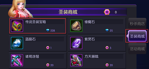 在游戏里,可以在商城中,通过开宝箱的方式,获得圣装。圣装会带来大量的属性提升。