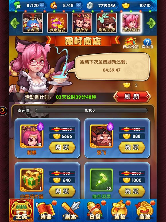 斑斓萌虎:土豪一天冲50.给20碎片,平民日常里有个神龙许愿,一天一颗龙珠,7天集体7颗龙珠就可以获得10个老虎碎片,慢慢攒,这里说下龙珠许愿除了boss打不过需要贿赂以外,其他你打不过都可以跑。