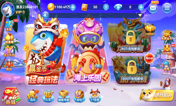 3、无需复杂注册流程,支持微信、支付宝一键登录,省去繁琐步骤,安全便捷,秒速进入游戏世界开启捕鱼狂欢。