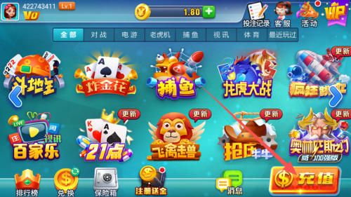 • 进入游戏大厅 → 点击右上角“充值”入口;