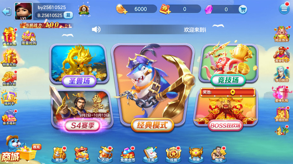 功能入口区:同样在屏幕上方,背包用于存放游戏中获取的道具;商城提供道具购买、炮台升级等服务,丰富玩家捕鱼手段;活动中心展示最新活动信息,如限时捕鱼赛、节日主题活动,参与活动能赢取丰厚奖励。界面两侧或特定位置,可能展示排行榜,依据玩家捕鱼成绩排名,激发竞争意识;好友列表方便玩家添加好友、社交互动,邀请好友组队捕鱼。