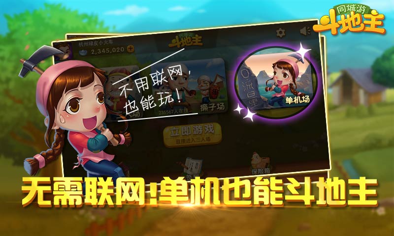 斗地主下载,首先可以在同城网上下载这个平台游戏,可以和同城的朋友们一起来玩娱乐游戏,这样几个朋友既可以成为对家,也可以成为合作的一家,可以增进彼此的感情和协作方式,也可以有一定的竞争方式。所以很多朋友都会选择在同城网上进行下载。