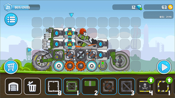 就这样不停过新手关刷钱,涡轮发动机必须有一个,粘性车轮必须有,两个就够,骷髅车架买四个,蓄电池买一个