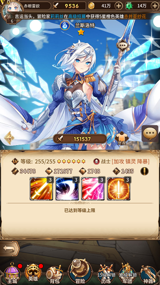 玩家创角成功进入游戏后需要根据系统的要求完成新手任务,过程中玩家可以在酒馆-高级招募进行一次招募,该招募必出一个5星英雄,前期尽可能优先培养该英雄,该英雄培养起来后前期的关卡基本能通关。