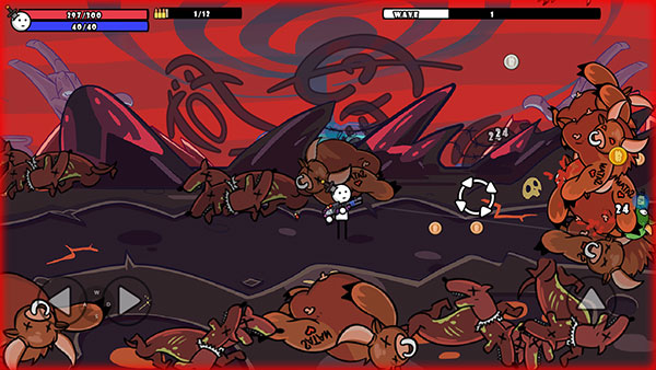 2、你的身边有一堆恶魔、蛮牛、火球等奇奇怪怪的生物向你进攻。