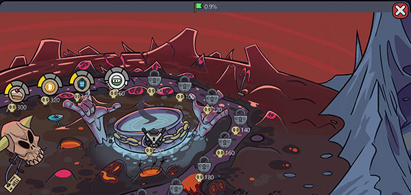 周围的世界发生了变化。绿草枯萎了。表面被火覆盖。一个巨大的地狱大锅出现在远处。当他触摸武器时,火柴人来到了可怕的土地上。