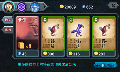 2.商店购买紫色兽王。最高级的卡牌就是紫色的,在商店可以直接购买,相比于蓝色和绿色的卡牌强大非常多,而消耗的金币也不高,可以快速提升自己的战斗力。