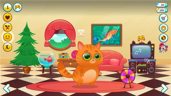 我的虚拟宠物猫游戏采用的是卡通风格,场景画面制作的很是精致,玩家不仅可以查看可爱呆萌的小猫咪玩耍,还可以在线和猫咪进行互动,解锁各种各样的道具,在bubu的家里享受乐趣,了解宠物生活中的其它秘密。