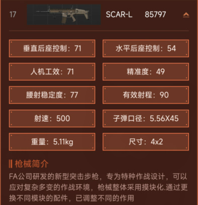 FA公司研发的新型突击步枪,专为特种作战设计,可以应对复杂多变的作战环境,枪械整体采用摸块化.通过更换不同模块的配件,已调整不同的作用。