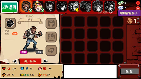 3、八位主角,数十种主动技能,超过百种被动技能: