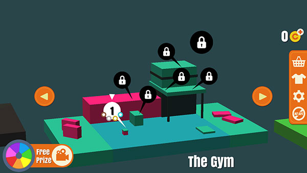 1、启动空翻魔术师游戏后,你会看到多种情景模式可供选择,例如gym(健身房)、mountain(山脉)、city(城市)和funhouse(游乐场)。通过不断闯关,你可以逐步解锁更多场景和关卡。首先打开已解锁的The Gym中的初始关卡。