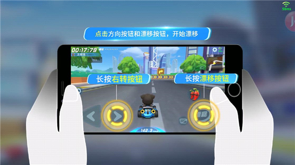 《汤姆猫飞车》操作简单易上手,左手操作方向按钮,右手操作漂移按钮。