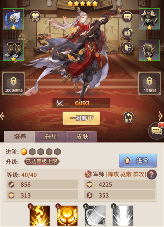 1、每位武将最多可穿戴四件装备及一至两个帅印。