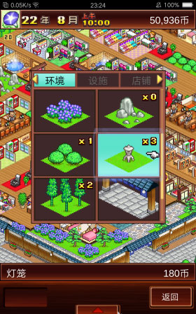 7、在设施周围种植植物可以提升该区域的整体景色,从而提高人气值。植物的影响范围为以自身为中心的2×2单元格,合理布局可实现最小植物数量达到最大增益效果。推荐使用映山红、竹林、天然石、枫树、梅花等观赏性较强的植物。