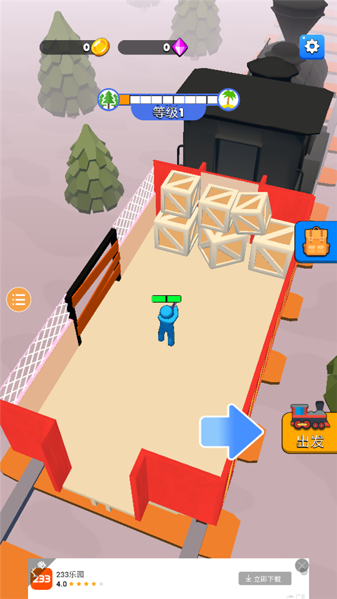 3、按照提示控制角色向前推进,消耗金币解锁新的车厢模块;