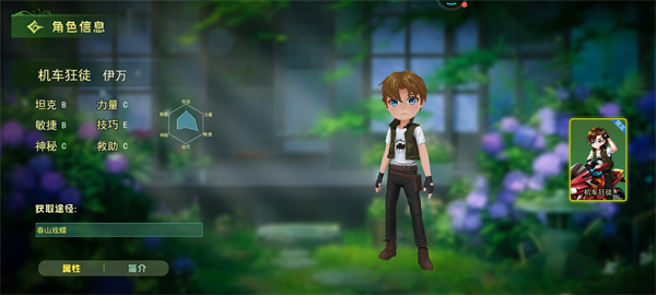 简介:伊万是狂野的机车手,防御(B级)和机动性(B级)兼备,擅长冲锋陷阵。技巧贫乏(E级)但简单粗暴的风格,适合正面突破。