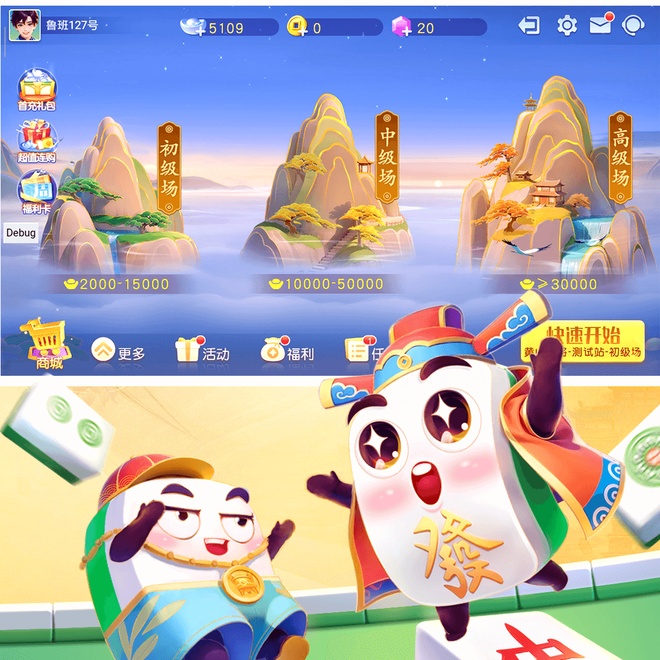 《土豪斗翻天》中的卡五星麻将采用湖北地区流行规则,胡牌类型丰富,计分倍数清晰: