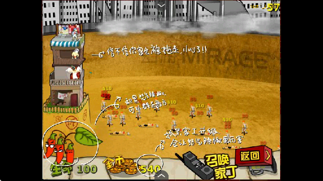 房子有100点生命值,为核心目标,增加紧张感,需合理防守,避免楼房被拆。