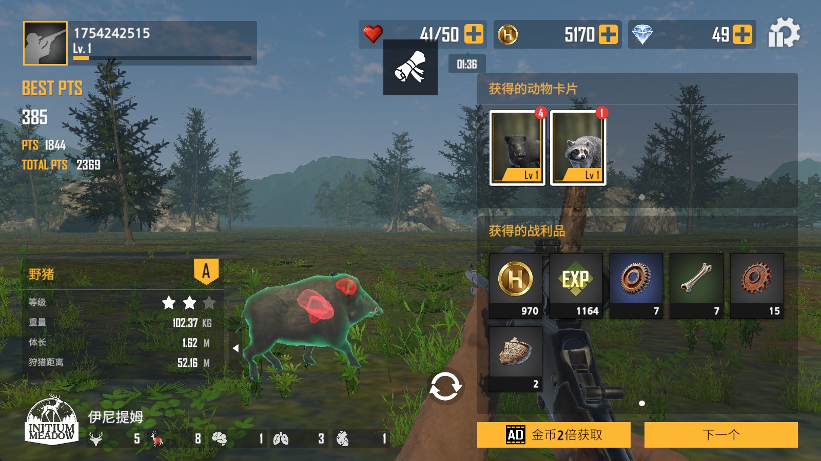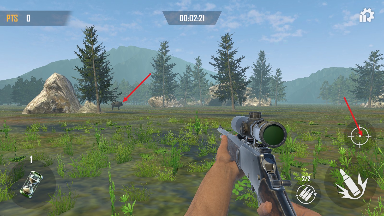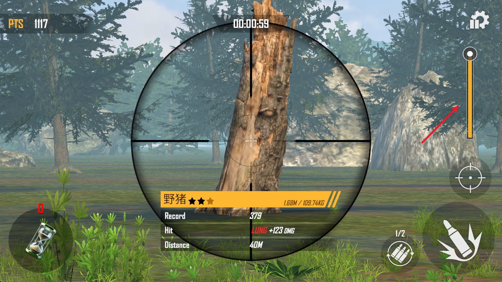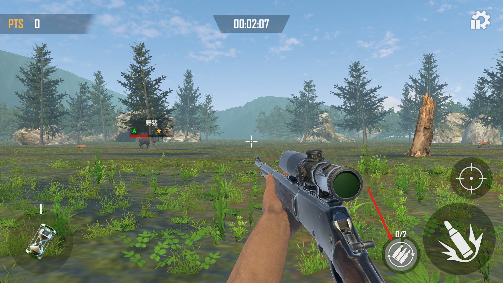 2、丰富的武器供你使用,配合不同的子弹,猎杀各种动物。