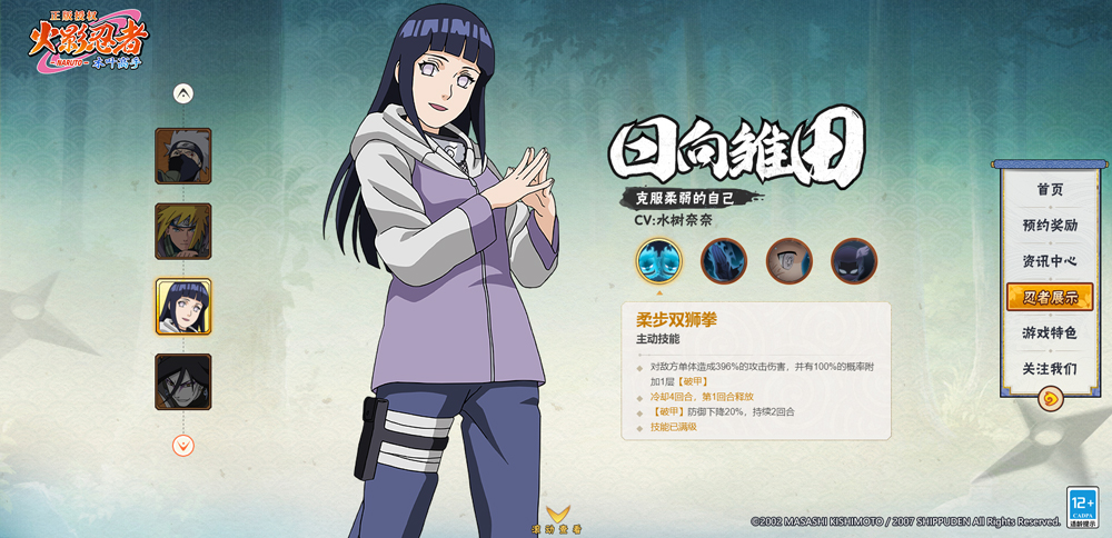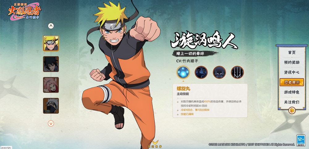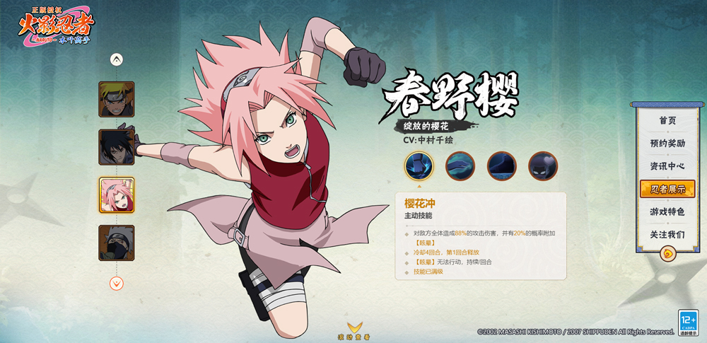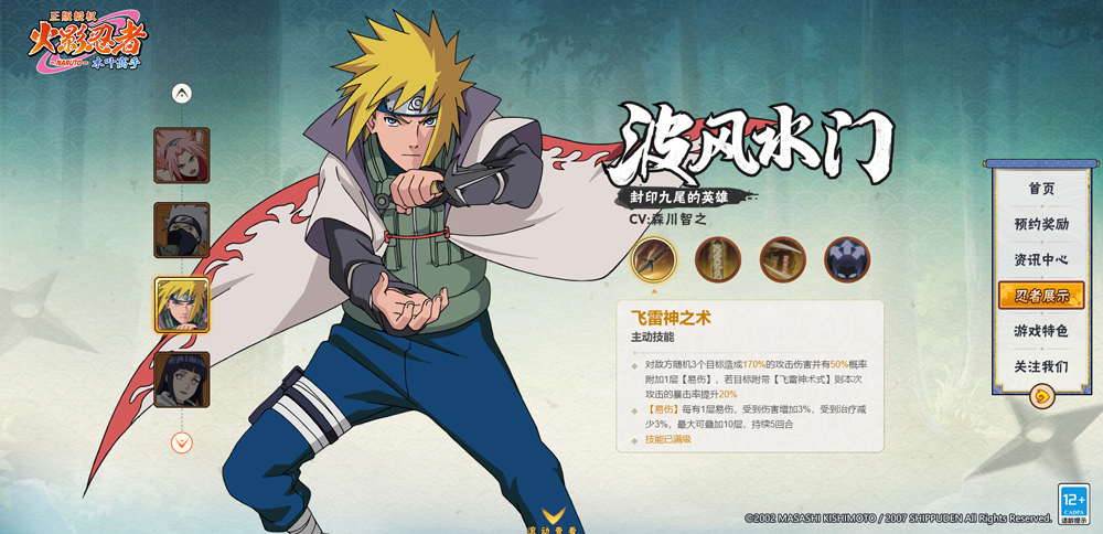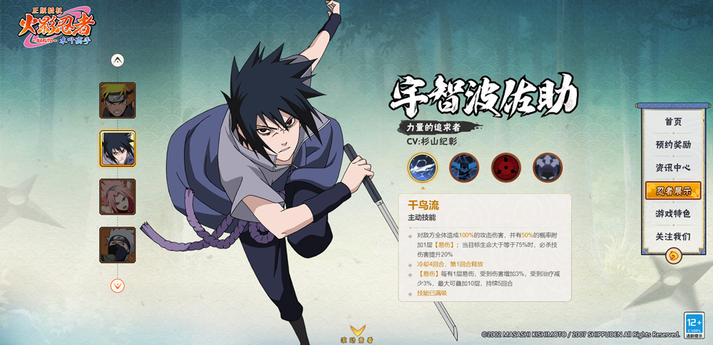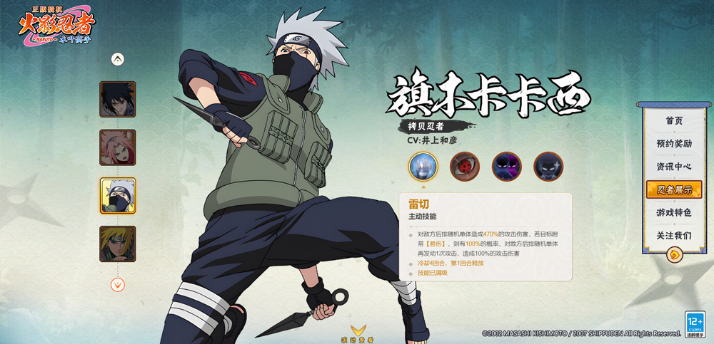 游戏提供了丰富的忍者角色供玩家选择,每个角色都有不同的阵营如心、技、身、智、勇等。