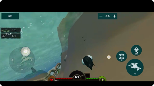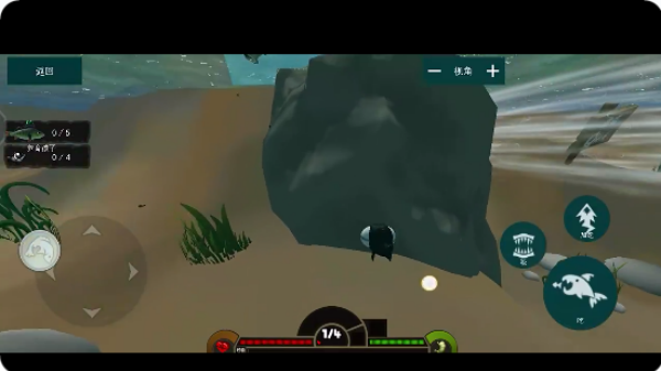 1、进入游戏,置身于海底中,第一人称视角穿梭在海底,自由的穿梭寻找食物。