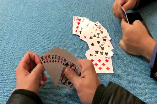 为了方便凑齐人数,玩家们又推出了二人斗地主的玩法。两名玩家各有17张牌,在剩下的20张牌中,有一张是地主玩家的底牌,二人斗地主底牌不公布。第一轮游戏中的地主随机分布,之后两名玩家轮流做地主。