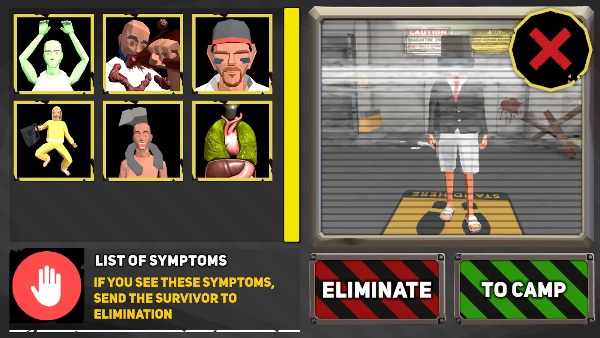 2、你的任务是识别所有感染者或疯子,并决定他们是否有资格进入你那令人敬畏的幸存者营地。