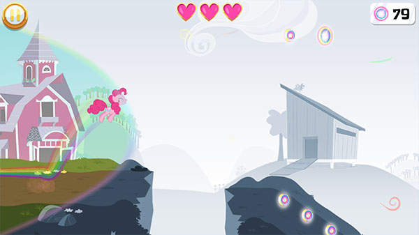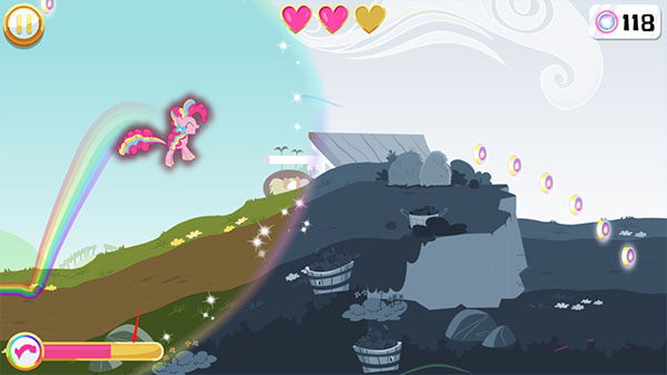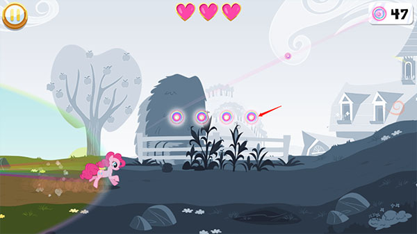 游戏采用生命值系统——你的小马需要用三颗红心开始每项任务。每次遇到障碍物或掉到洞穴中,就会失去一颗红心。如果失去所有红心,就需要重新开始任务。