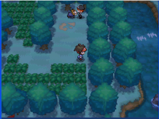 遇见对手开战,打完之后牧场人员要主角和对手寻找迷路的PM,在牧场里转转,有训练师对战,到达最深处就可以找到目标