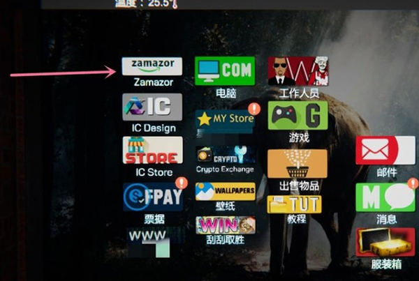 2、第一次使用电脑需要按空格键开机,之后就会直接进入电脑桌面状态。在电脑桌面左上角打开zamazor按钮,如图所示。