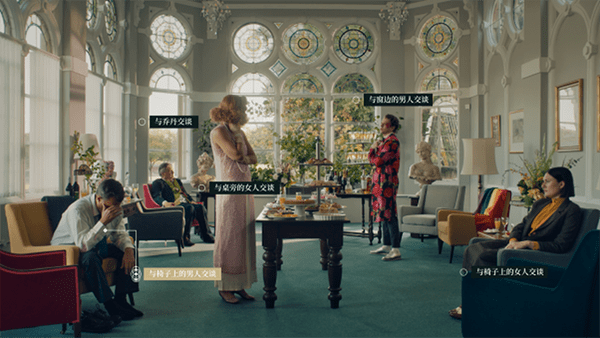 7、然后你就会来到宴会大厅你可以与他们逐个对话,根据他们口中的线索进行整合从而进一步展开行动