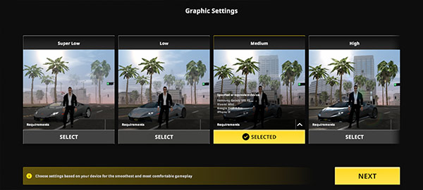 点击右上角小齿轮,进入GRAPHICS,对应自己的手机类型选择画质,其他细节可以按需调整,最后点击Save即可。