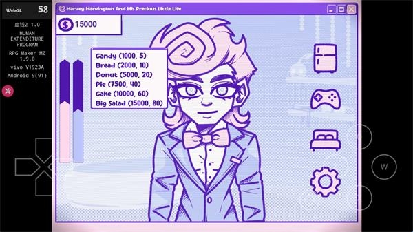 3、屏幕左侧的蓝条是心情值,玩家可以通过点击右侧的手柄按钮来和哈维玩游戏恢复心情值。