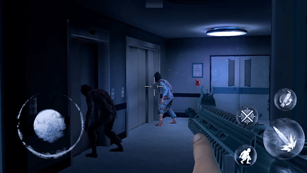 1、在一开始我们来到医院当中,首先左右查看四周,之后走向大门。接着进行瞄准,干掉两个小怪物