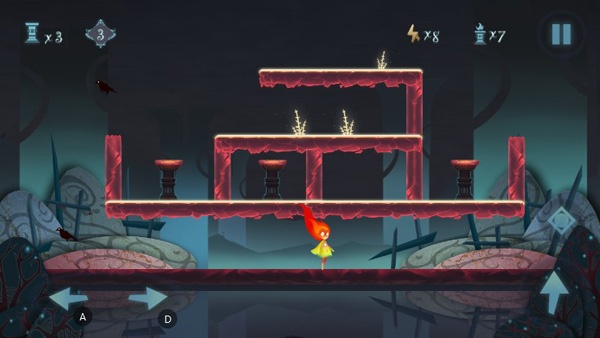 你要控制画面中拥有拥有特殊能力的主角去到不同的地顺利的点燃所有的火炬,而且点燃的方式十分简单,你只需要靠近火炬即可。