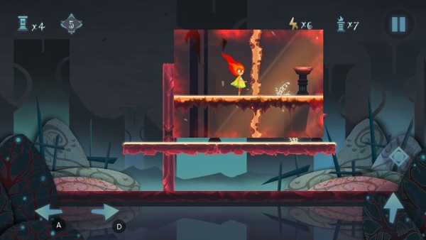 每个场景设计了两个世界,当玩家如果点燃火炬途中遇到困难时,可以进入另一个世界来想办法把前面的路连接起。