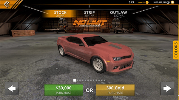 2、在这里大家可以购买自己喜欢的赛车,在足够的金币下哦!