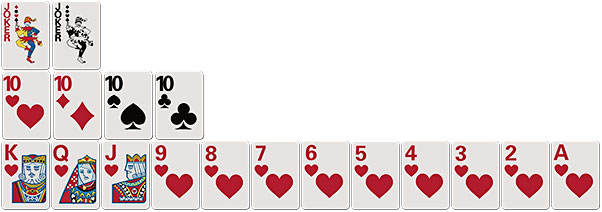 副牌从大至小:A,K,Q,J,9,8,7,6,5,4,3,2
