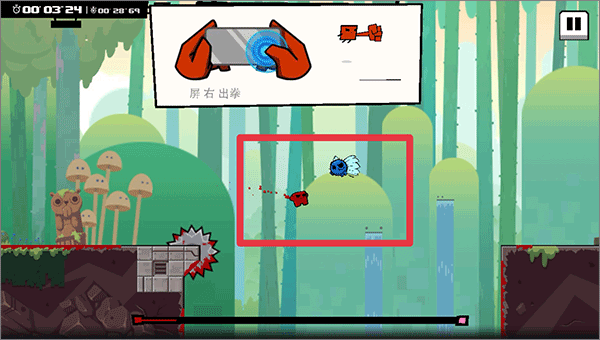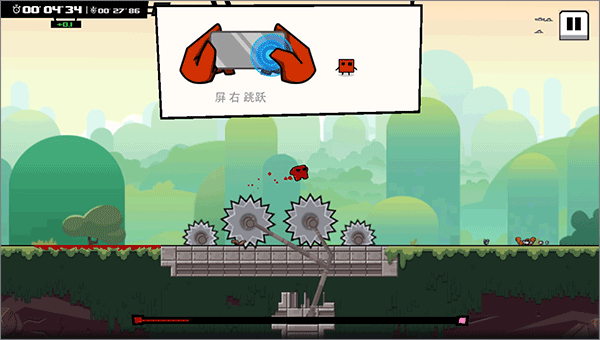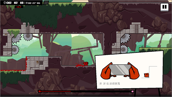 3、控件控件现在是两个按钮,您有一个跳跃,一个跳跃攻击,一个潜水和一个滑行。两个按钮并不意味着控制较少,这意味着我们设计了使用两个按钮的关卡。通过设计与控件互补的关卡,您可以得到令人惊讶的移动和精度。Super Meat Boy感觉很棒,因为关卡设计和控制之间的结合,Super Meat Boy Forever也不例外