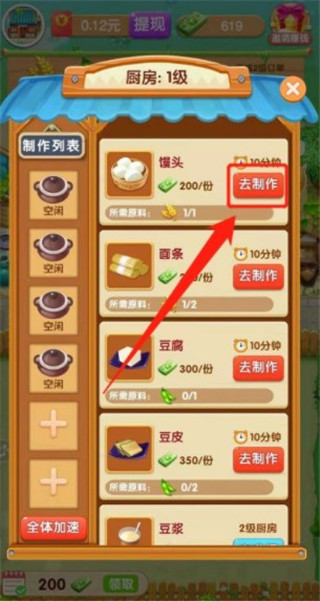 5、收获小麦后点击厨房,可以将小麦加工成馒头;