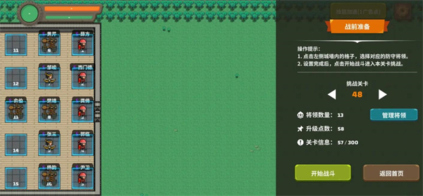 1、首先说说一下将领,这个模式目前只有3种类型将领,一个是投石车主要伤害来源范围伤害,点满技能眩晕敌人二次伤害。一个是炸弹人副伤害来源也是范围伤害,同时给城墙回血。一个是弓箭手单体伤害最高前10关主力输出,后面主要作用是冰箭减速。