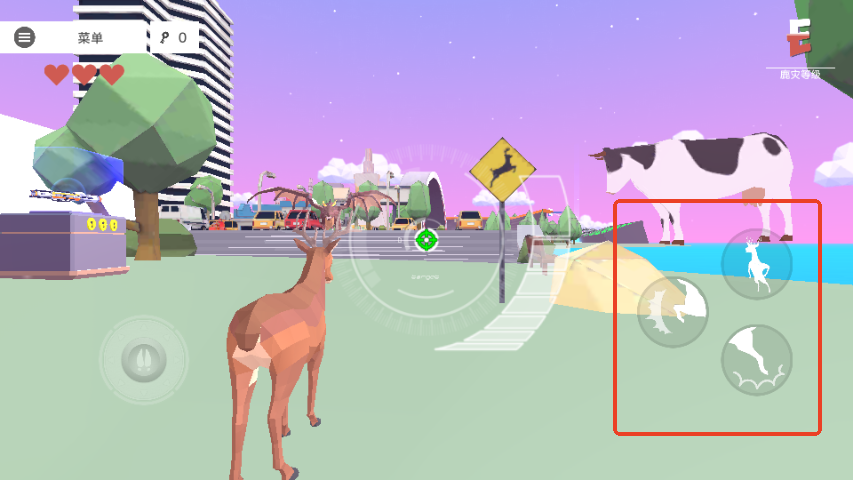 1、很火爆刺激的冒险挑战游戏,城市之中自由冒险,化身一只鹿完成挑战。