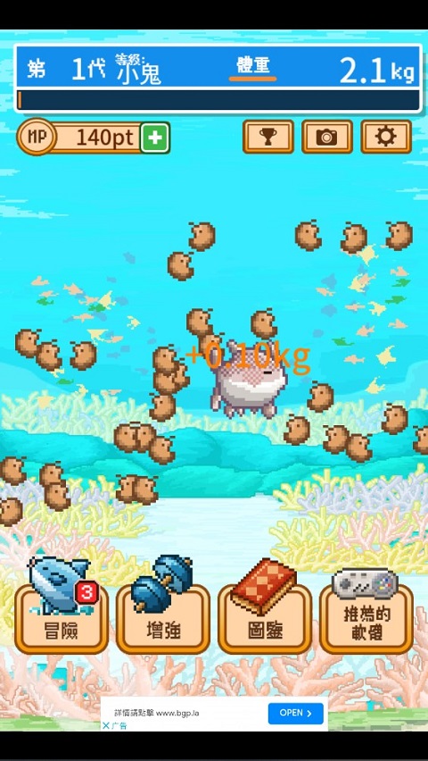 3、当曼波鱼进食到一定阶段,就会进化,循环反复,直到曼波鱼成长到最大体重!