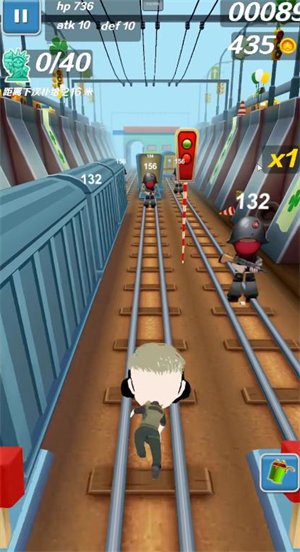 2、在跑酷过程中上下左右滑动屏幕可以控制角色躲避障碍物。