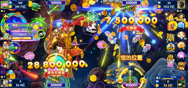 支持海量玩家实时同服对战,千炮齐发,金币满屏飞溅!在激烈的竞争环境中展现你的精准瞄准与资源管理能力,争夺最高捕获排行榜,书写属于自己的捕鱼传奇。