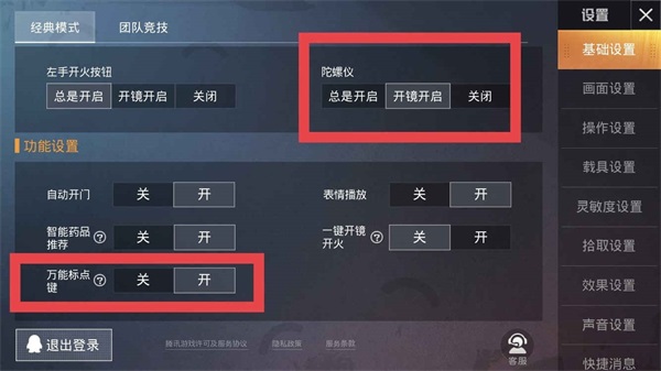 这里小编推荐开启“万能标点”、“侧面瞄准镜”、“陀螺仪”这三项设置,无论是团队作战还是个人刚枪操作,大都少不了它们。当然,你也可以根据个人喜好或与师父商量后再来决定是开启还是关闭,小编这里只是建议。