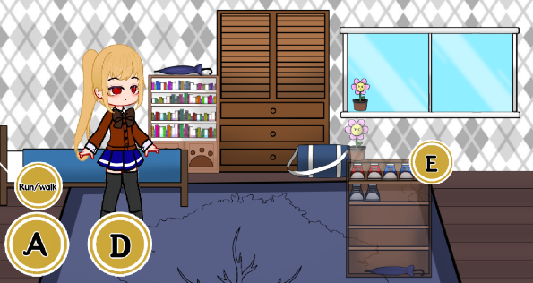 1、开始游戏后,玩家可以通过左下角的AD按键控制人物左右移动,E是互动键