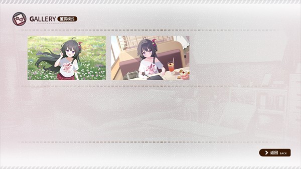 6、第一次通关后,玩家返回到主界面点击鉴赏模式可以查看角色的精美CG图片。