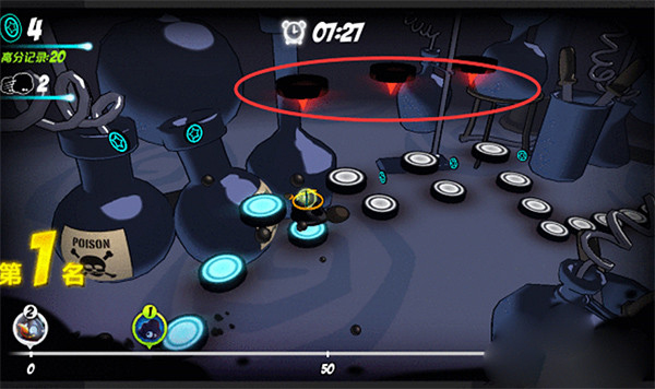 1、游戏到后期会出现移动的圆盘,这个玩家看到后不要蒙